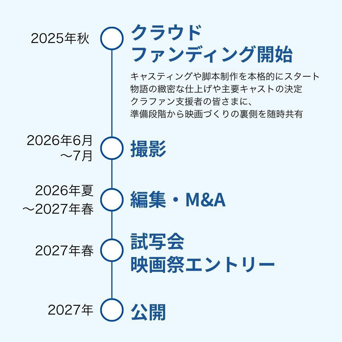劇場公開は2027年を予定し、10万人の動員を目指します。さらに、企業・学校・地域コミュニティでの上映会やイベント、各種動画配信サービスを通して、より多くの方に物語を届けます。