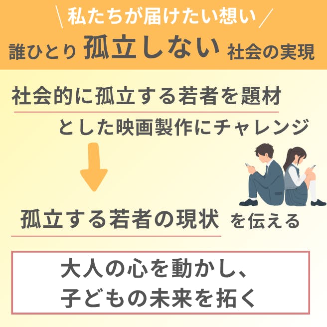 そして、今回は「社会的に孤立する若者」を題材とした映画製作にチャレンジをしていきます!
