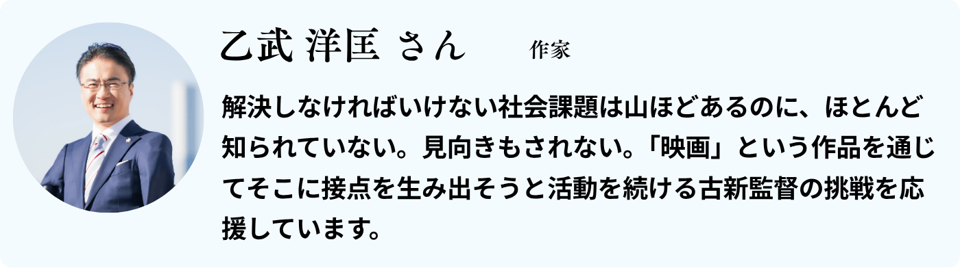 ただ単に情報を伝えるだけではなく、観客の心に深く響き、共感が連鎖し、行動が生まれる——映画ならではの力で、社会に新しい風を巻き起こしたいのです。