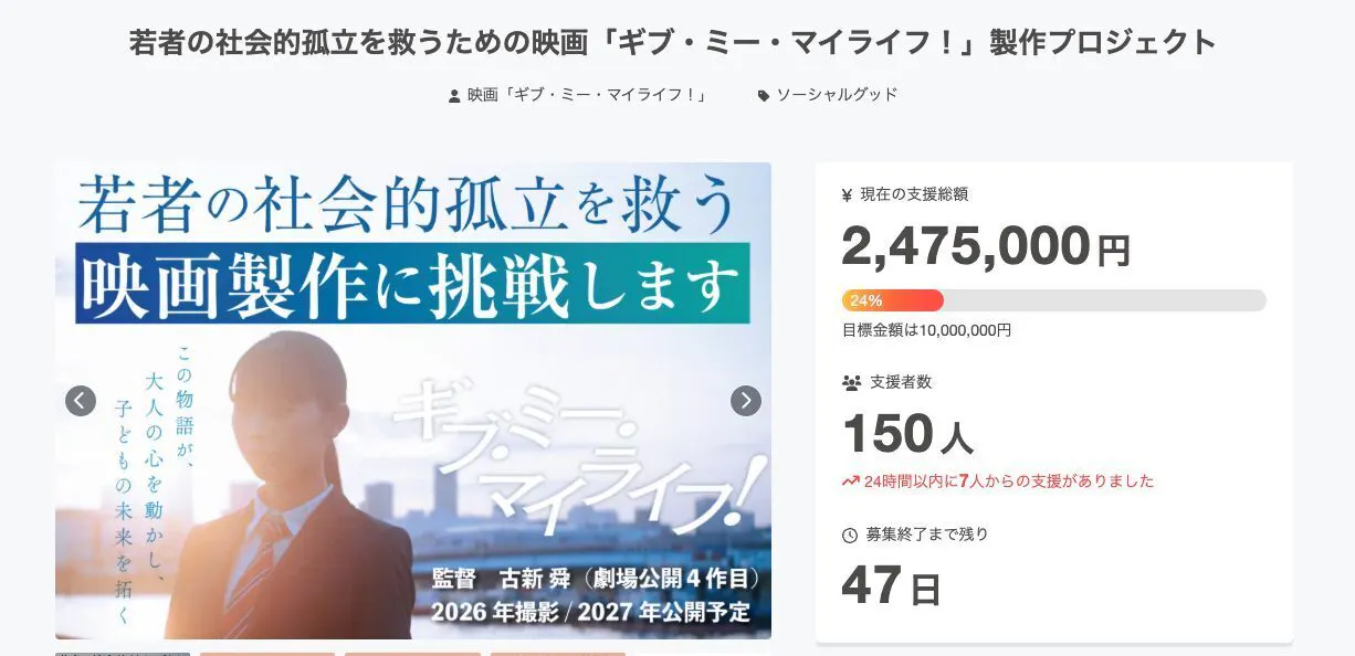 映画「ギブ・ミー・マイライフ!」のクラウドファンディングプロジェクト、続々と支援をいただいていますが、スタート19日目の11月8日、支援者数150人を突破しました。