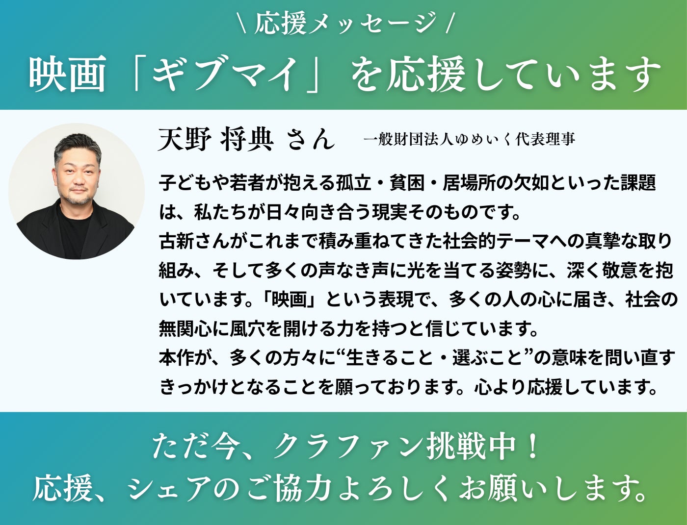 一般財団法人ゆめいくは、社会とのつながりや体験の機会が少なくなりがちな不登校や居場所のない若者たちに、農作業やボランティア活動への参加、自主的な学びの機会づくりなどを支援する団体。代表の天野さんは、ご自身のビジネスの傍ら、長年、若者たちとの関わりを続けていらっしゃいます。