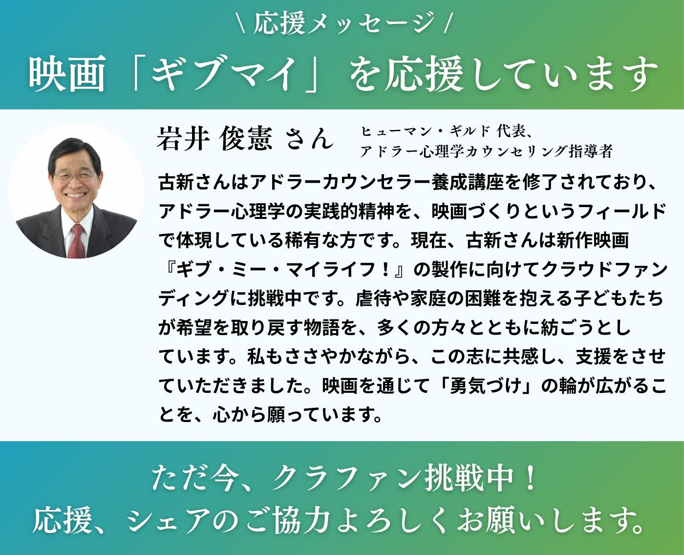 アドラー心理学カウンセリング指導者 岩井俊憲さんから応援メッセージをいただきました