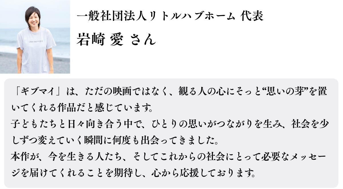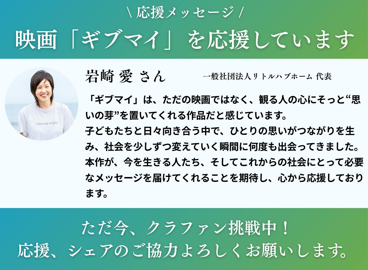 一般社団法人リトルハブホーム代表 岩崎愛さんより応援メッセージをいただきました