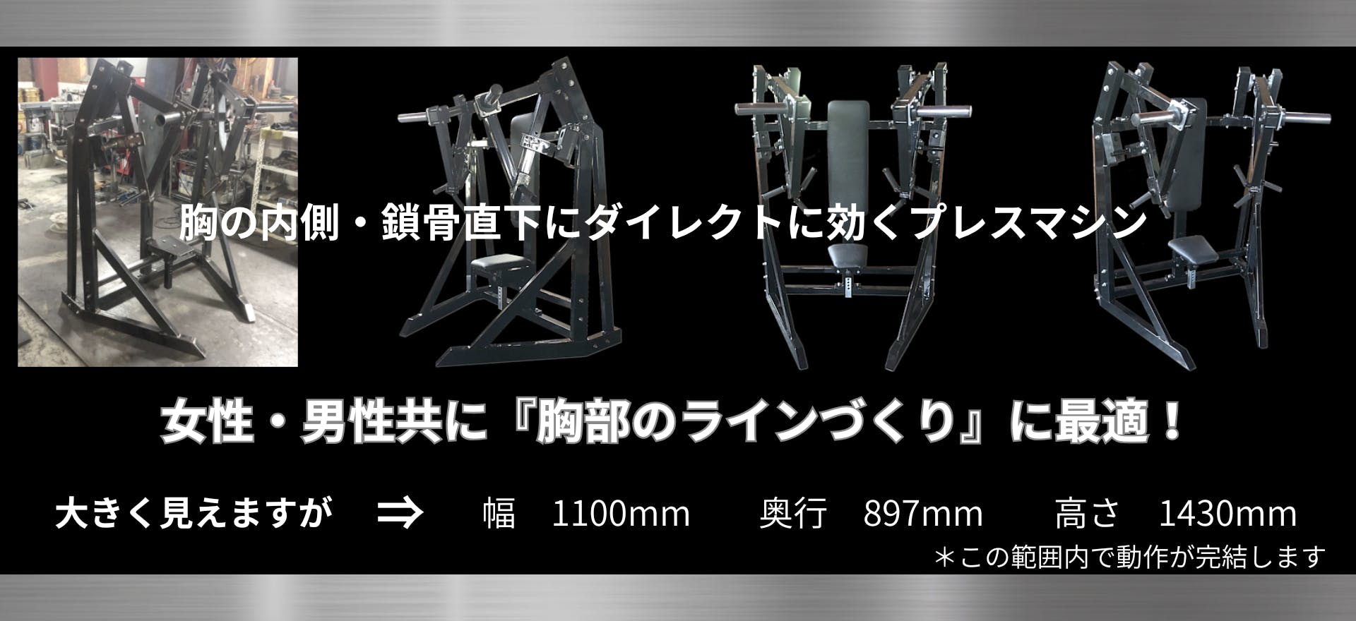 胸の内側・鎖骨直下にフォーカスしやすい、他に例を見ない設計の胸部プレスマシン。女性・男性問わず『胸部のラインづくり』を目指す設計です。