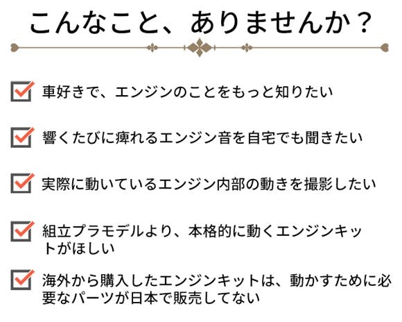 届いたその日から、手のひらで本物のエンジンを楽しむことができます。