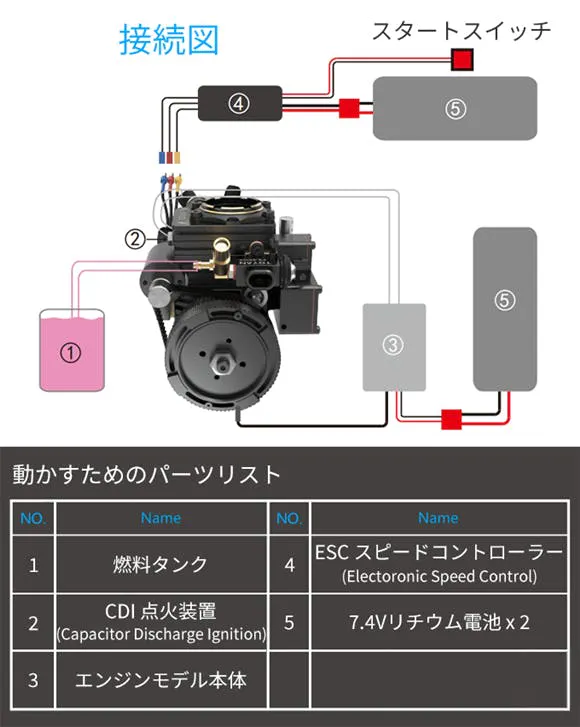 ※注意:7.4Vリチウム電池 ×2 や燃料はお客様ご自身でご用意ください。