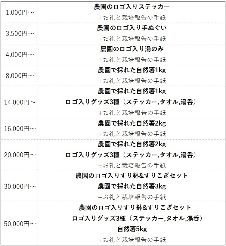 リターンについては、以下のように予定しております。