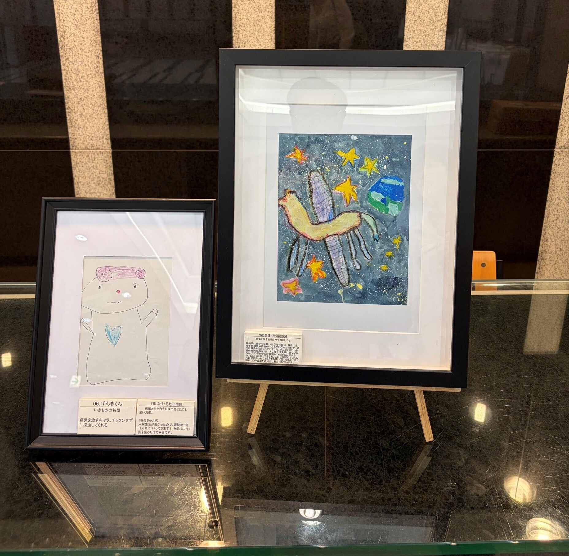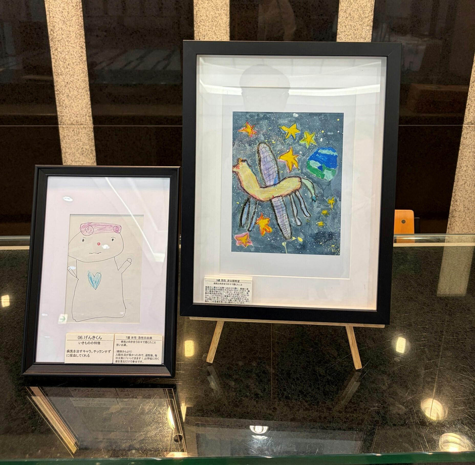学会では口頭発表に加えて、ブースでの展示も行いました。優勝作品・準優勝作品の絵や、このクラウドファンディングについてもご紹介し、多くの小児科の先生方に足を止めていただき、熱心に見ていただくことができました。