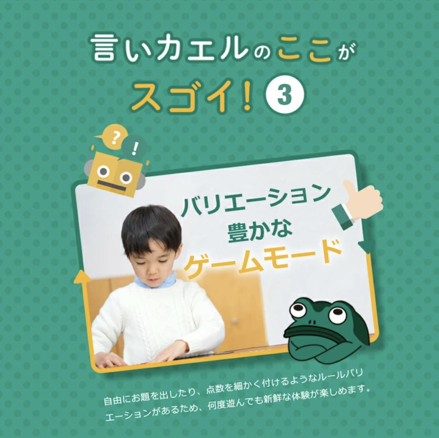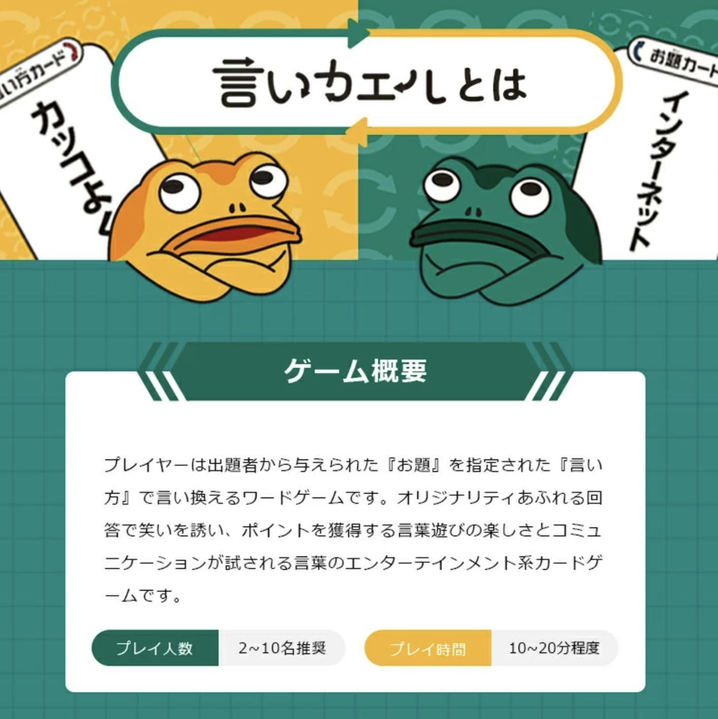私たち言いカエルの製作陣は発想の自由さを大切にして欲しいという思いからこのゲームを制作しました。言葉はひとつの表現にとどまらず、言い換えることで新しい視点やユーモアが生まれます。 「正解」を求めるだけではなく、「自分なりの面白い答え」を考える楽しさを知ってほしいと考えています!