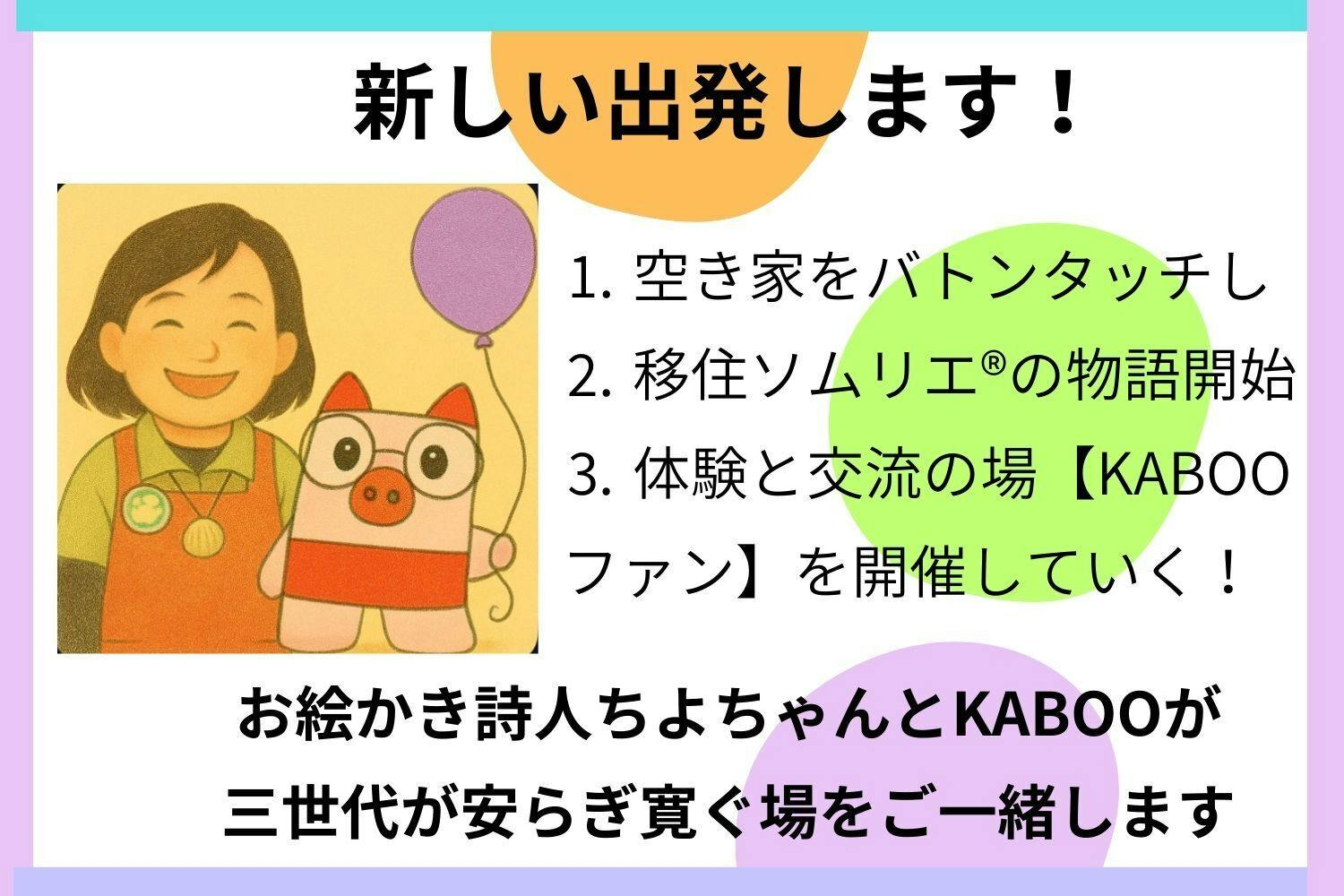 8年間抱えてきた各地の空き家を手放し、身軽になって、 KABOO(かぶぅ)と一緒に全国へ 「こどもたちが喜び笑顔になる体験と交流=KABOOファン」 を届ける旅に出ます!
