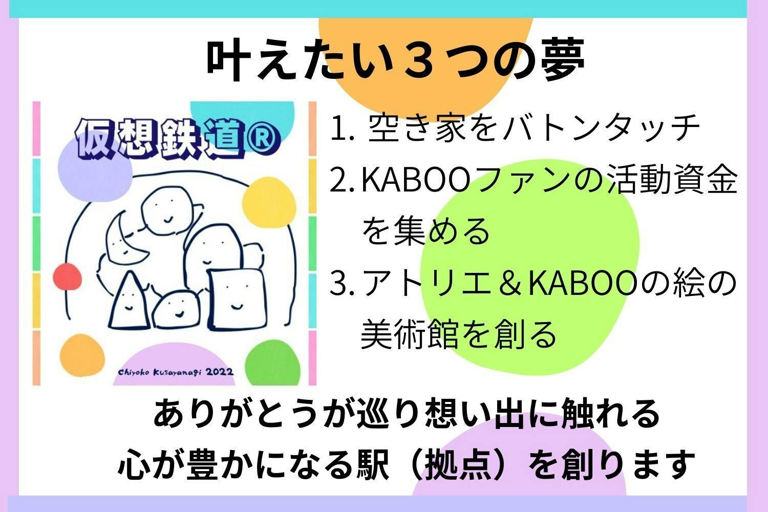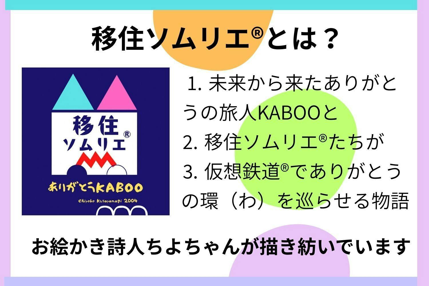 お絵かき詩人として、KABOOたち移住ソムリエ®︎が仮想鉄道®︎で笑顔で活躍する、ありがとうが巡る物語を絵や言葉や写真で届けることを一生の仕事にしよう。