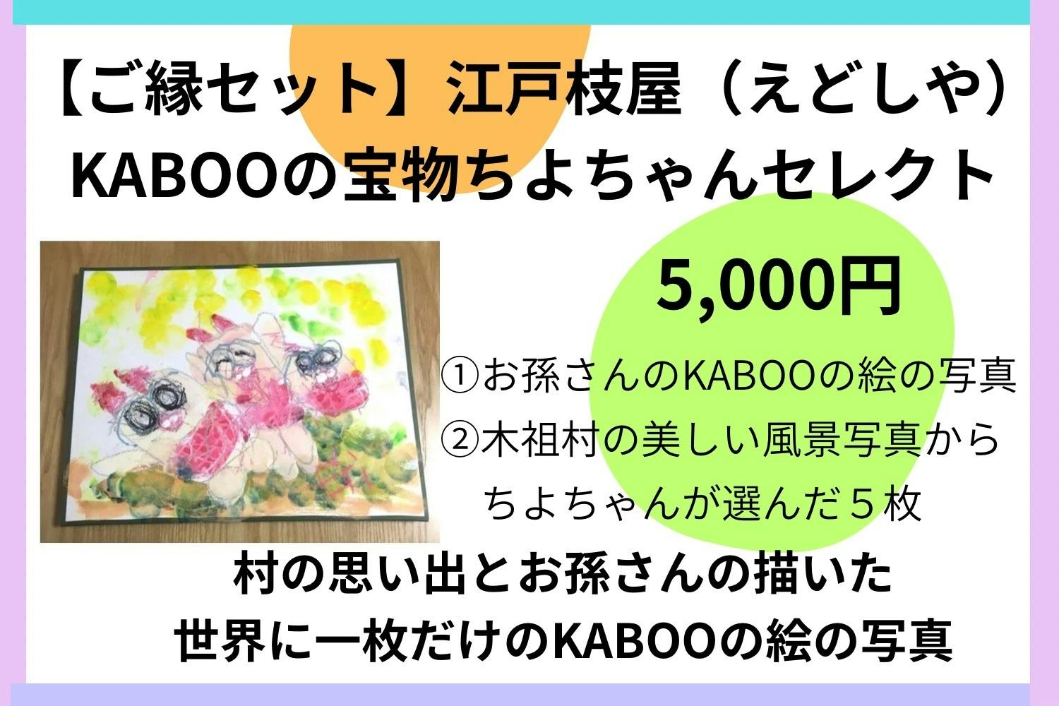 【ありがとう江戸枝屋(えどしや)KABOOの宝物】 (15,000円) *一期一会(15)にちなんで。江戸枝屋のお孫さんが描いた世界に一枚だけのKABOOの絵【KABOOの宝物】の写真と村の美しい想い出の風景写真をご提供!