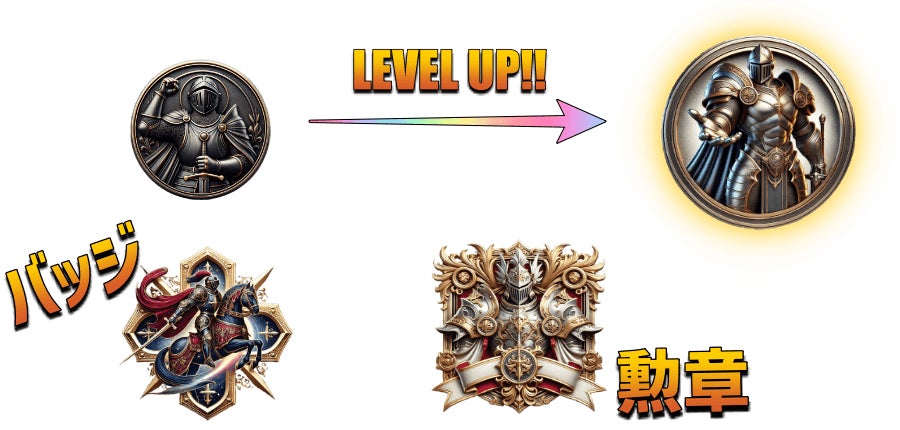 レベルが上がるとそのレベルを示す象徴(低レベル層では「メダル」)がカッコよくなったり、豪華で煌びやかになったりと自己顕示欲を満たす要素も搭載し、掲示板に参加して一緒にゲームを楽しむだけでなくプラスアルファ的な楽しみもあります。