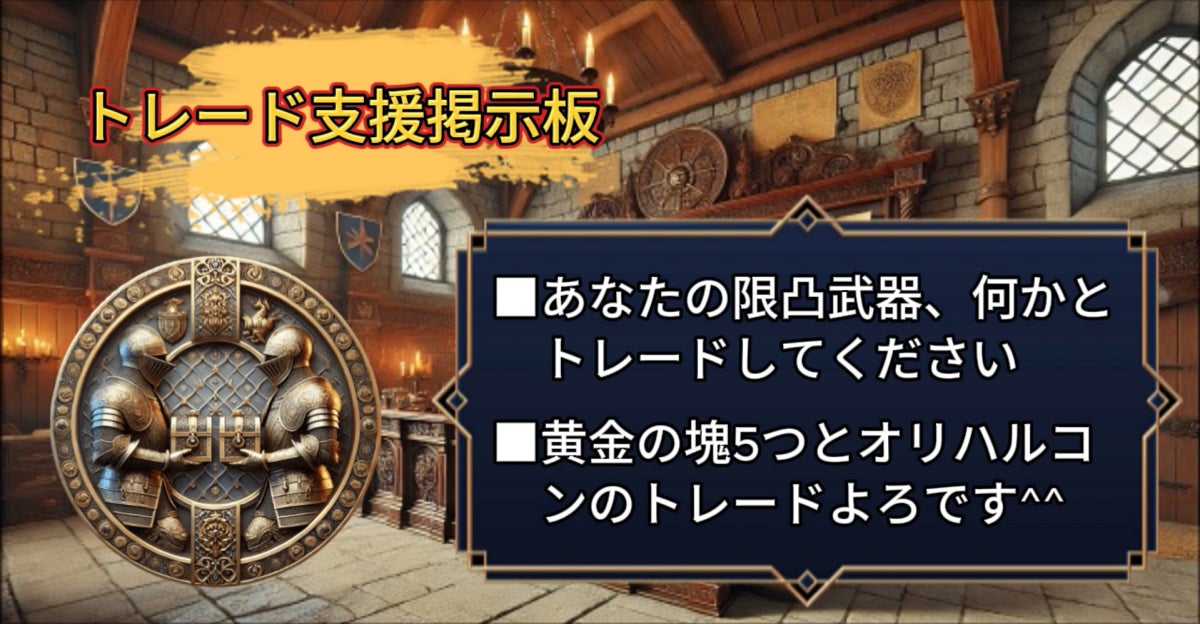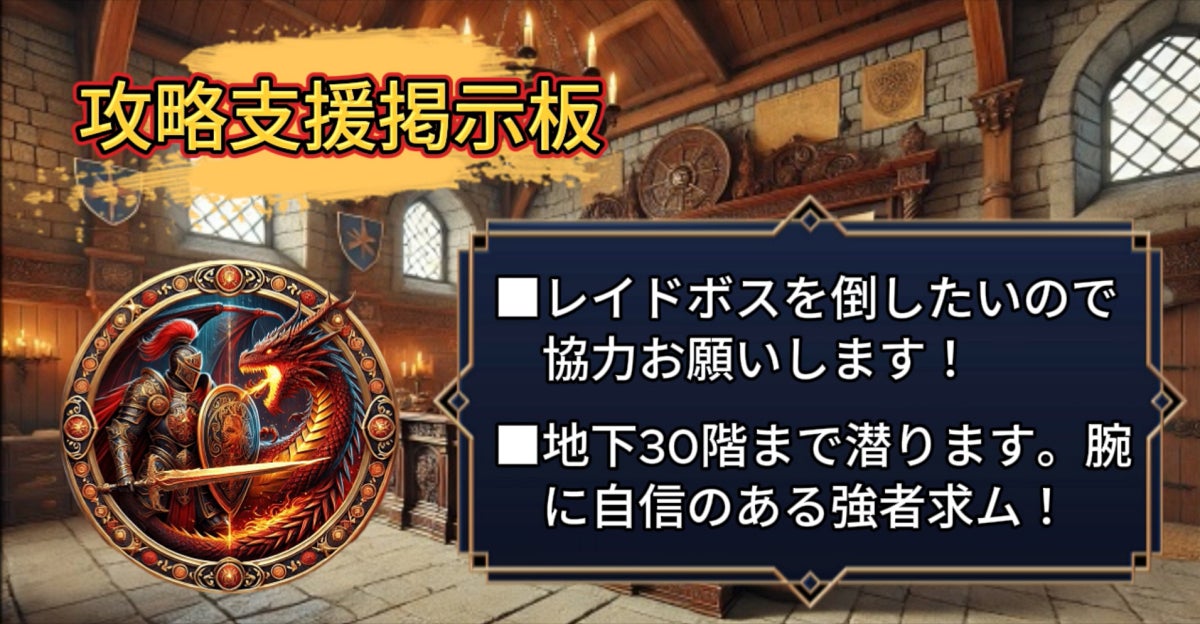 以上のように掲示板を公開し他のゲーマーに助けを求め、依頼することができます。(上記画像はイメージ画像となります)