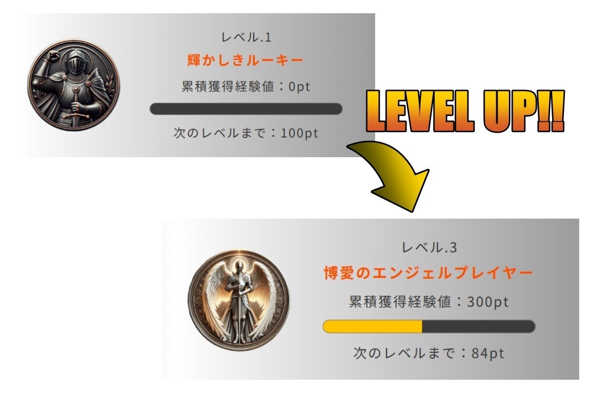 これまでの項でも触れましたが、贈呈されたヘルプポイントは経験値に変換され、規定値まで貯めるとレベルが上がります。