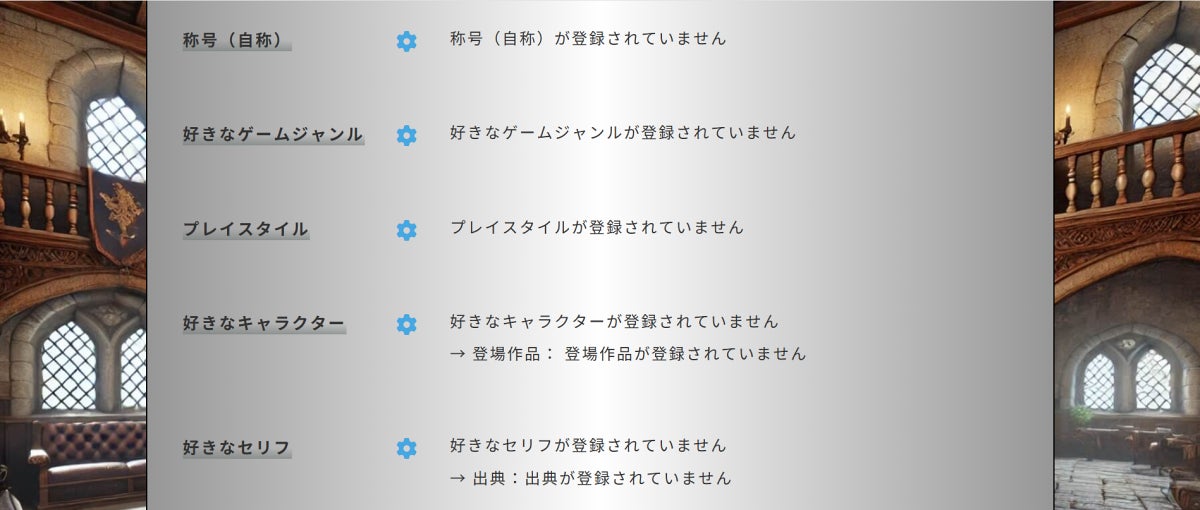 せっかくのゲーマーのためのコミュニティサイトですので、プロイフィール項目もゲーマーらしい内容をたくさんご用意しています。