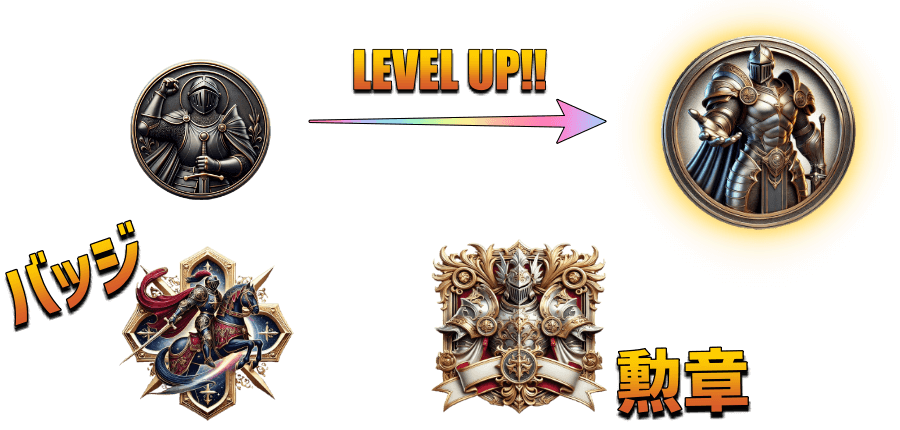レベルが上がるとそのレベルを示す象徴(低レベル層では「メダル」)がカッコよくなったり、豪華で煌びやかになったりと自己顕示欲を満たす要素も搭載し、掲示板に参加して一緒にゲームを楽しむだけでなくプラスアルファ的な楽しみもあります。