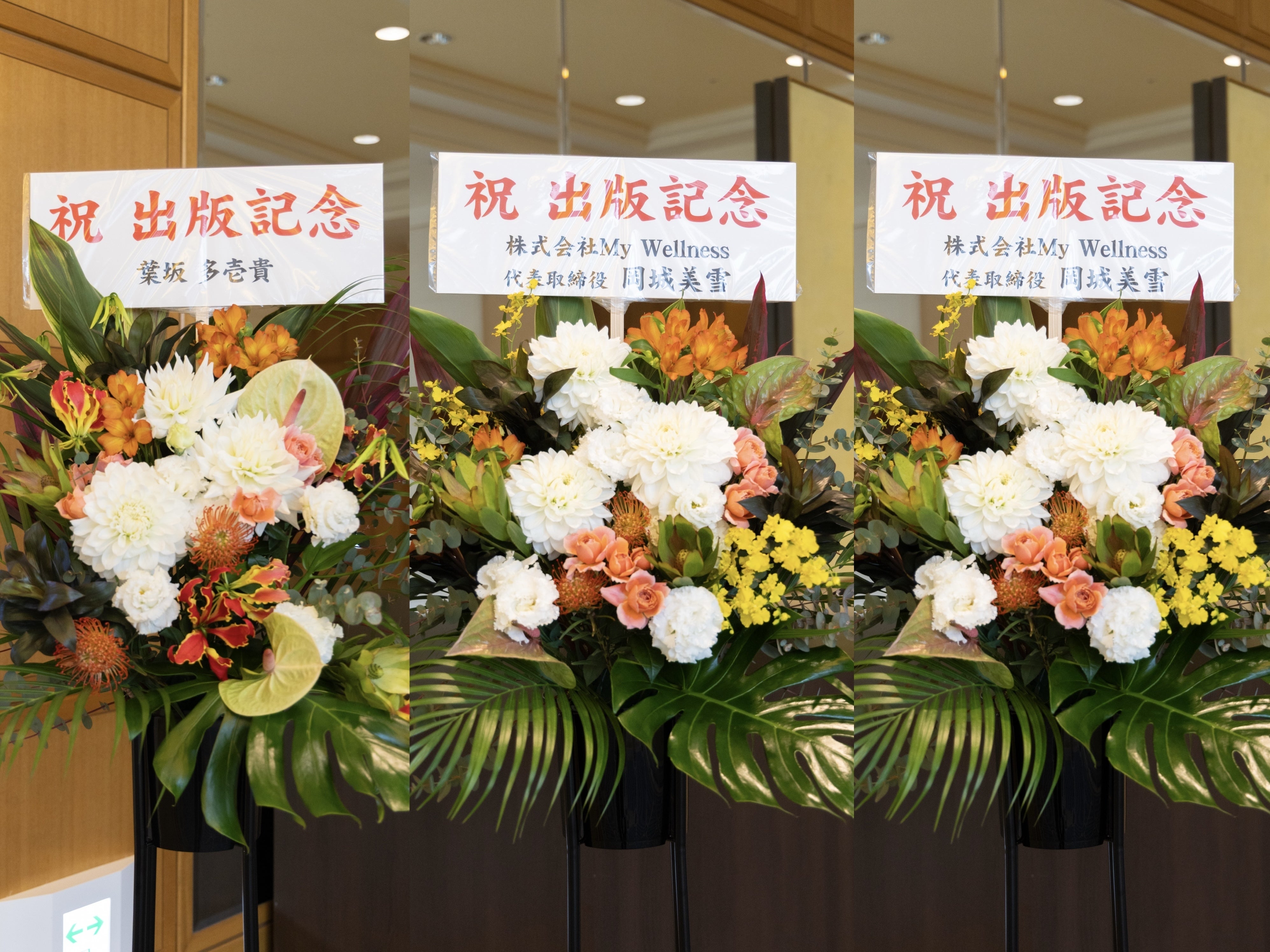 会場を彩るブックタワーやスタンドフラワーをご支援くださった皆さま
