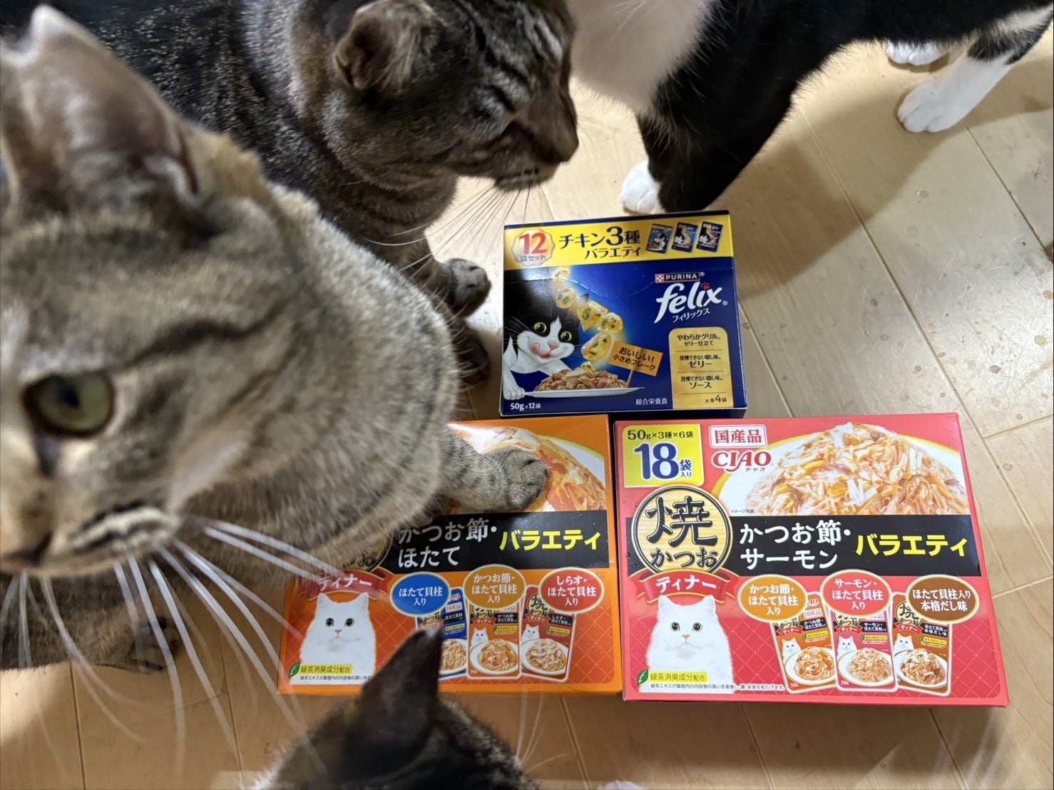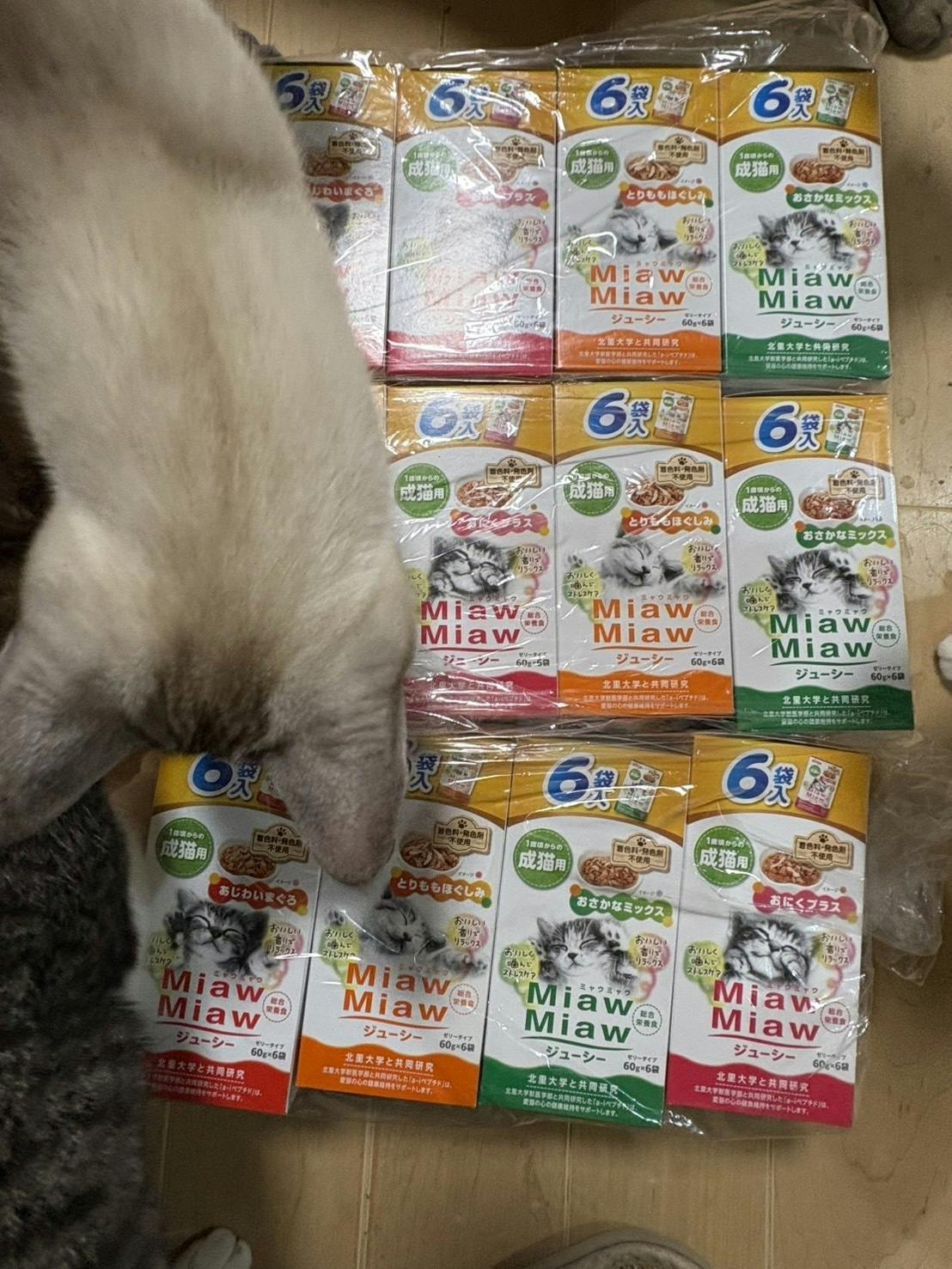 開封すると、猫さんたちがすぐに集まってきて興味津々で、とても嬉しそうにしていました。