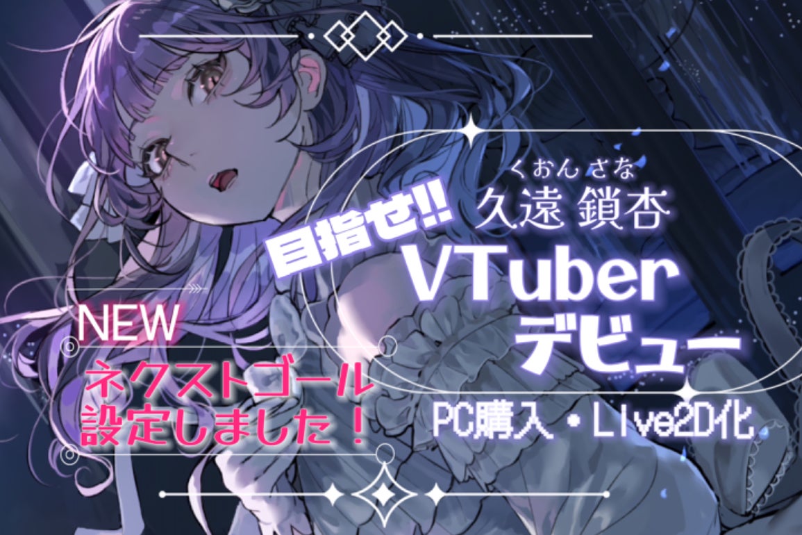 私は久遠 鎖杏(さな)と申します!普段は歌ってみた動画を投稿、IRIAMにて2Dラジオ配信をしております!始めたばかりで無名も無名ですが、やる気は十分!やりたいことは沢山ありますが、恥ずかしながらそもそも現在ゲーミングPCを所持しておらず、Live2D化の為の依頼料と活動に必要な資金調達に苦悩を抱えております。VTuberとして新しい形での表現を目指し、視聴者に刺激的で楽しいコンテンツを提供したいと思っております。この夢を実現するには皆様のご支援が必要です。どうぞよろしくお願いいたします!