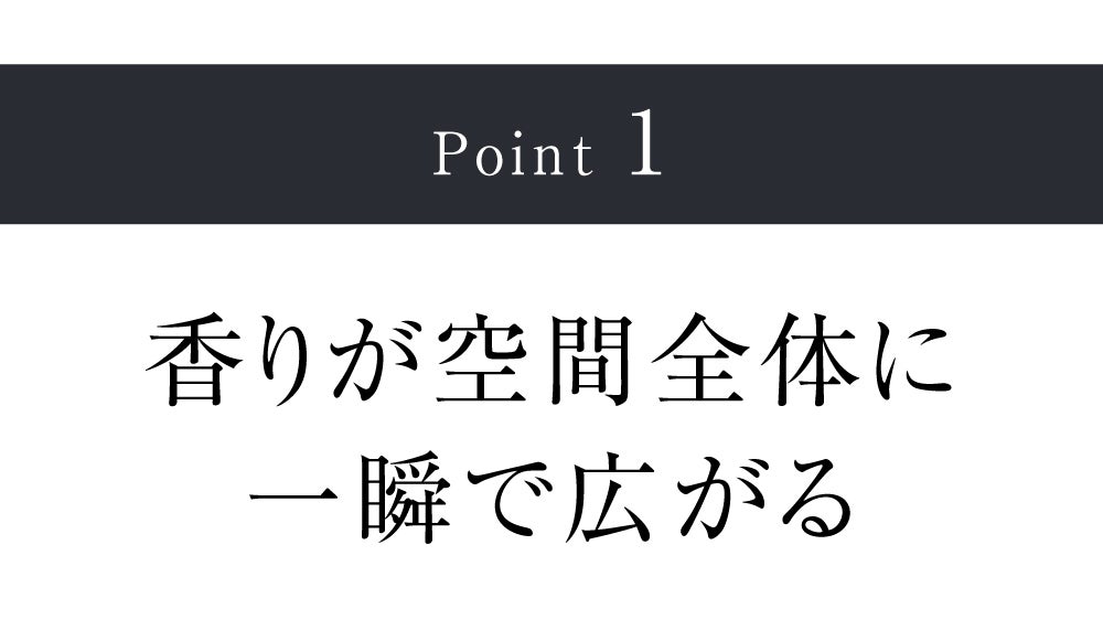 一般的な送風式や超音波式とは異なり、空気の流れを瞬時にコントロールして、香りを遠くまで、すばやく、そして静かに(※25dB)届けることができます。