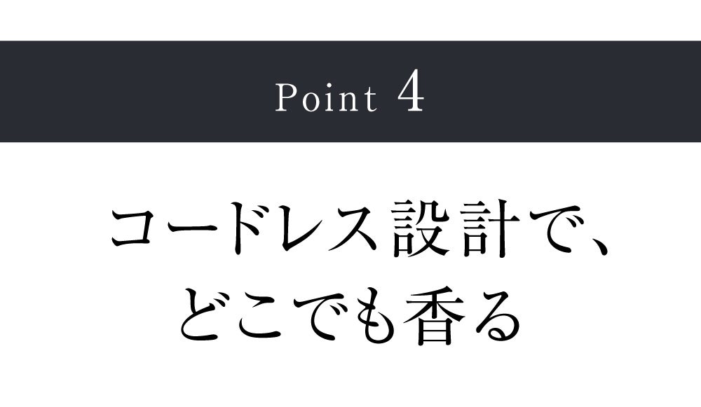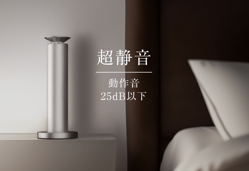 動作音はわずか25dB以下。これは、 木の葉がそっと触れ合うくらいの静けさで、眠りを妨げることなく、 香りだけが空気に静かに広がっていきます。