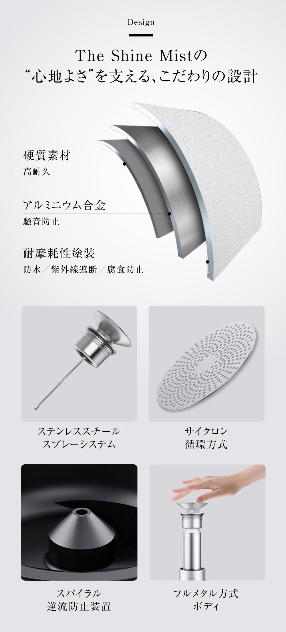 The Shine Mistは、軽量でありながら高い耐久性を誇る「アルミニウム合金製」。