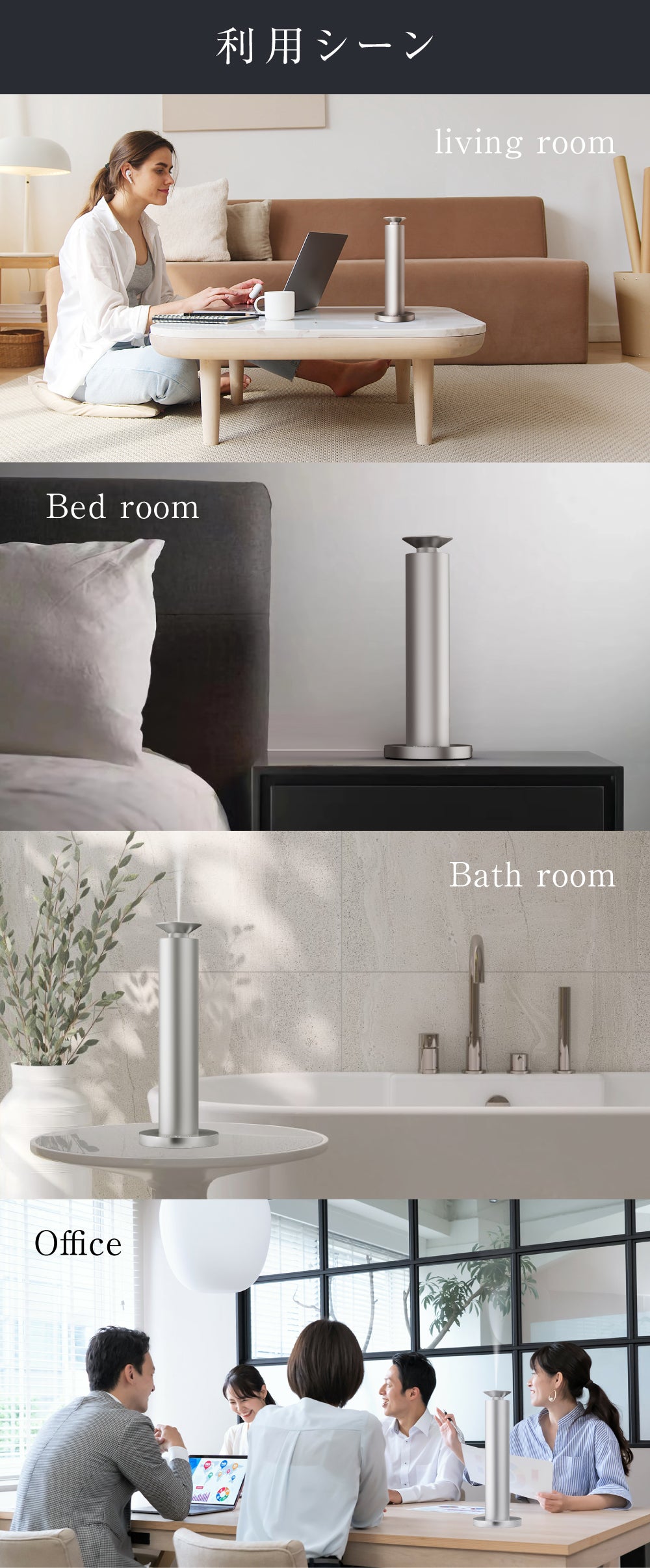 軽くきめ細かなミストは空気になじみやすく、香りがふわっと空間全体に広がります。