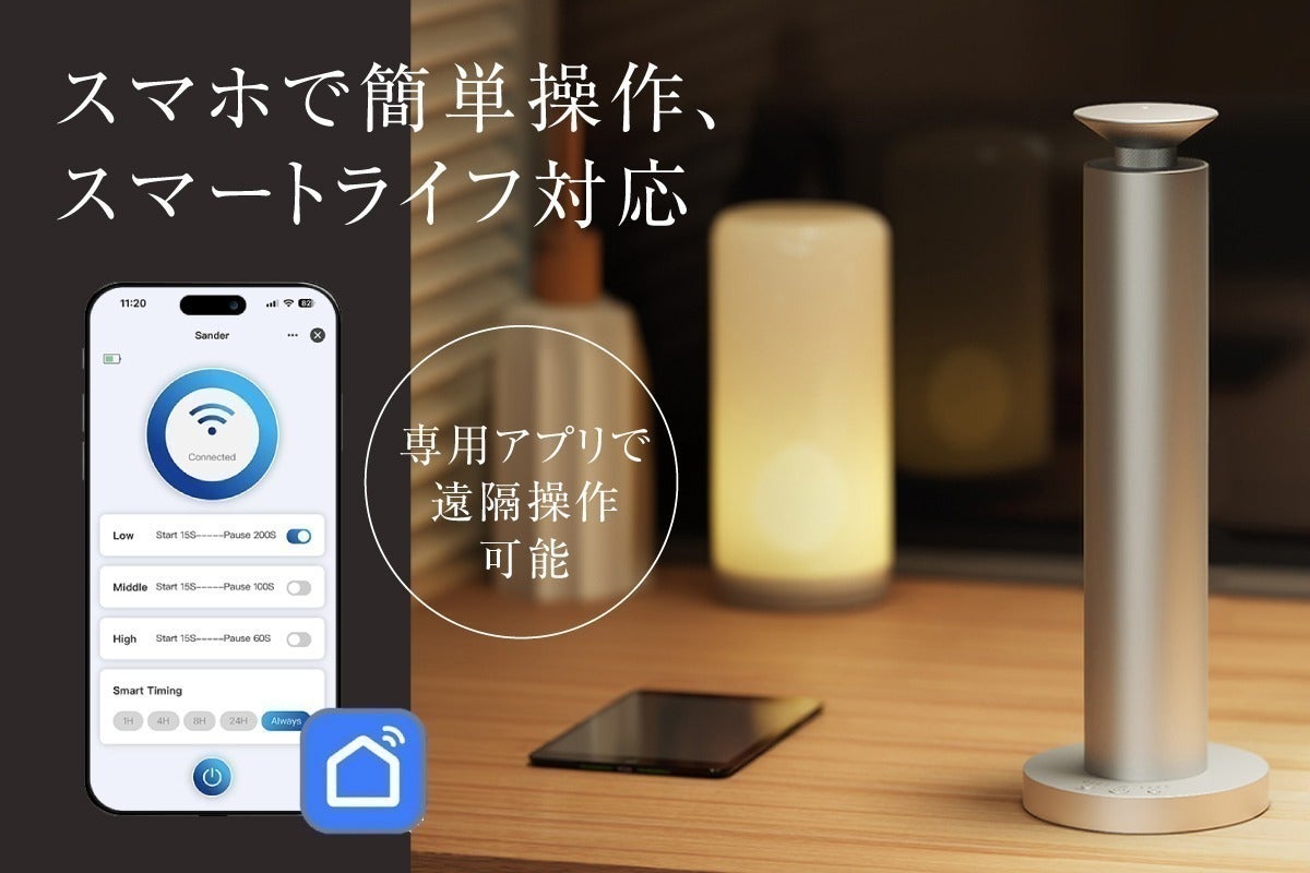本体のシンプルなボタン操作はもちろん、Wi-Fi環境があればスマホからも操作が可能。