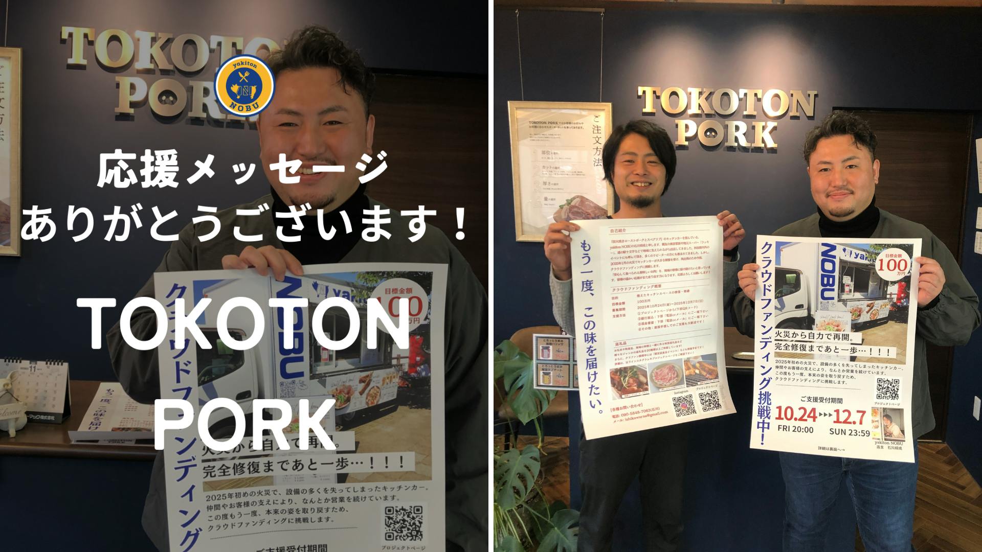 TOKOTON PORKさんから、応援メッセージとチラシ設置のご協力をいただきました!