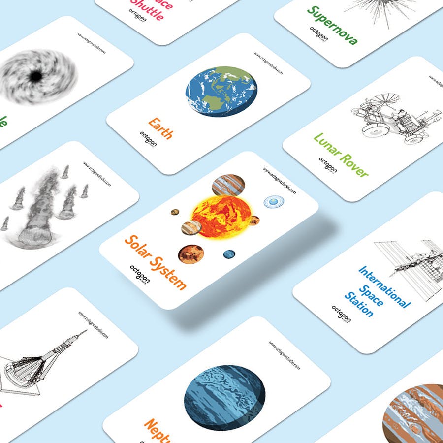 ゲームのように楽しみながら、惑星や探査機の名前・形・特徴を覚えることができます。