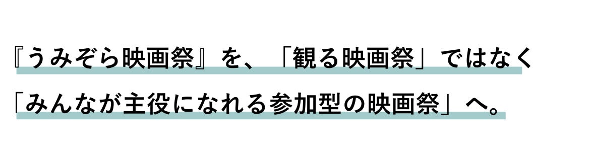 私たちと共に「うみぞら映画祭」を作り上げてくれる多くの仲間たちと、ここからさらに進化させていきます。この、進化し続ける「うみぞら映画祭」の姿を、ぜひ一人でも多くの方に知っていただきたいと願っています。