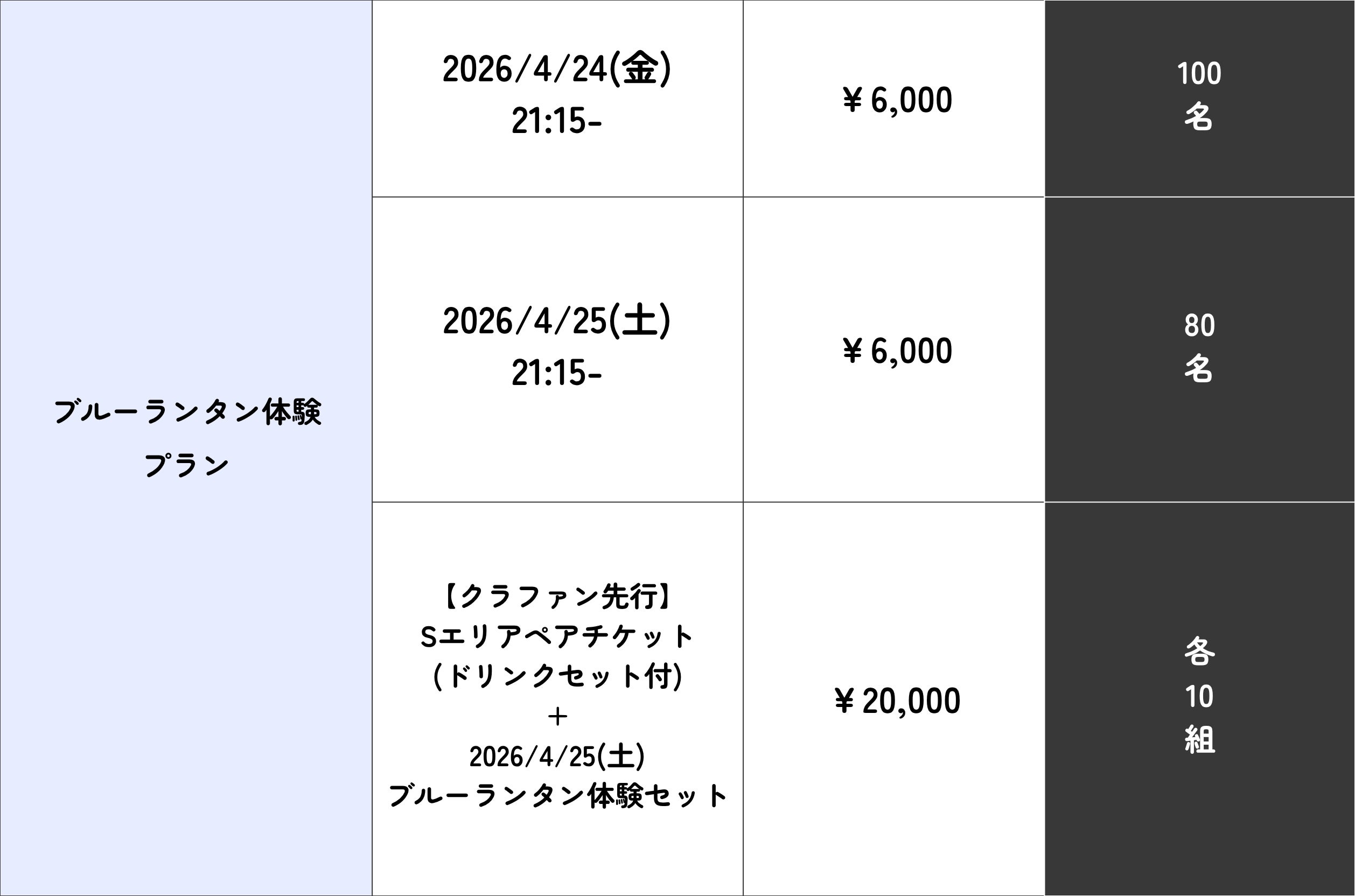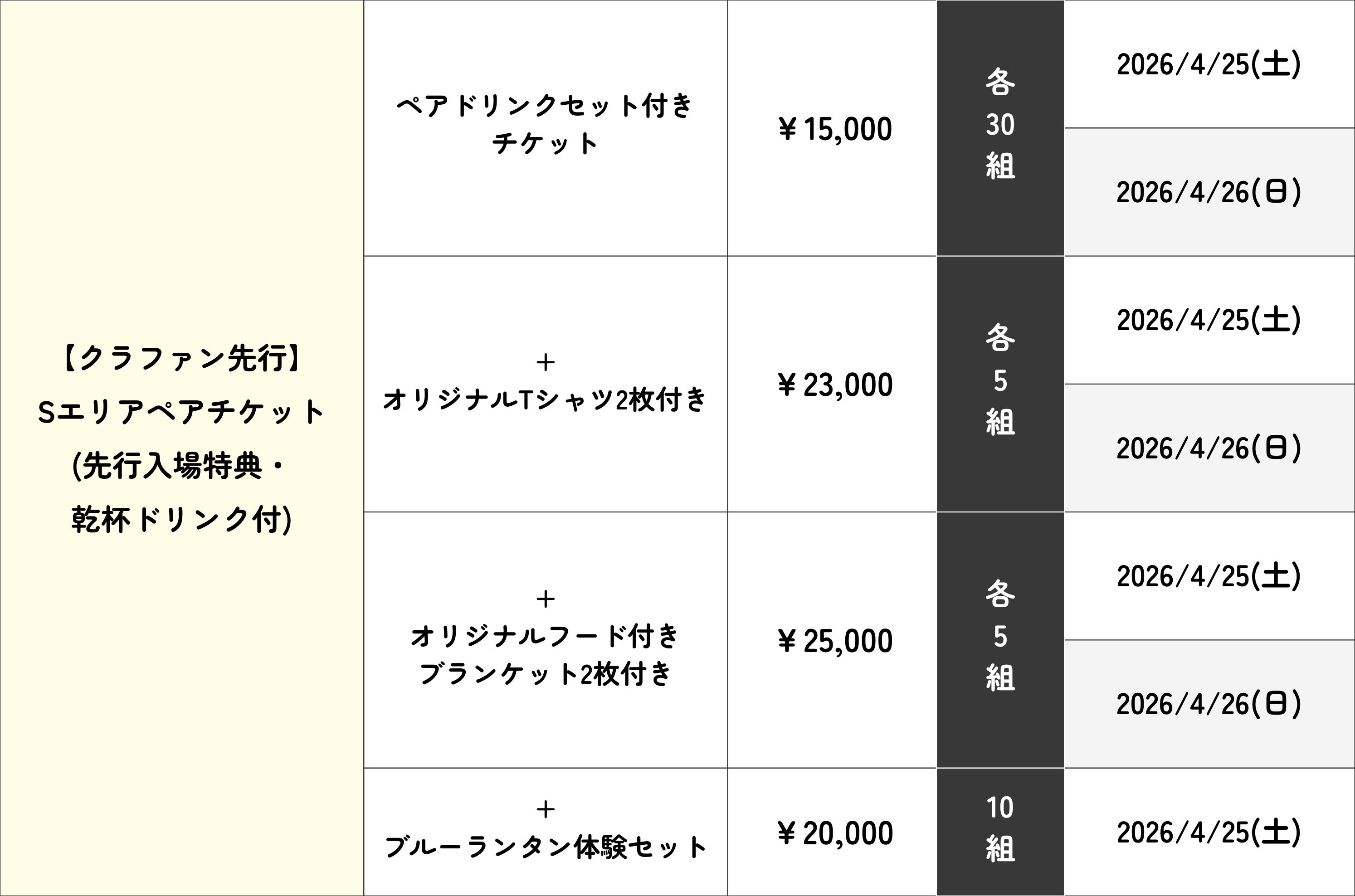 ※4/25(土)Sエリアの先行入場・チケット確約付