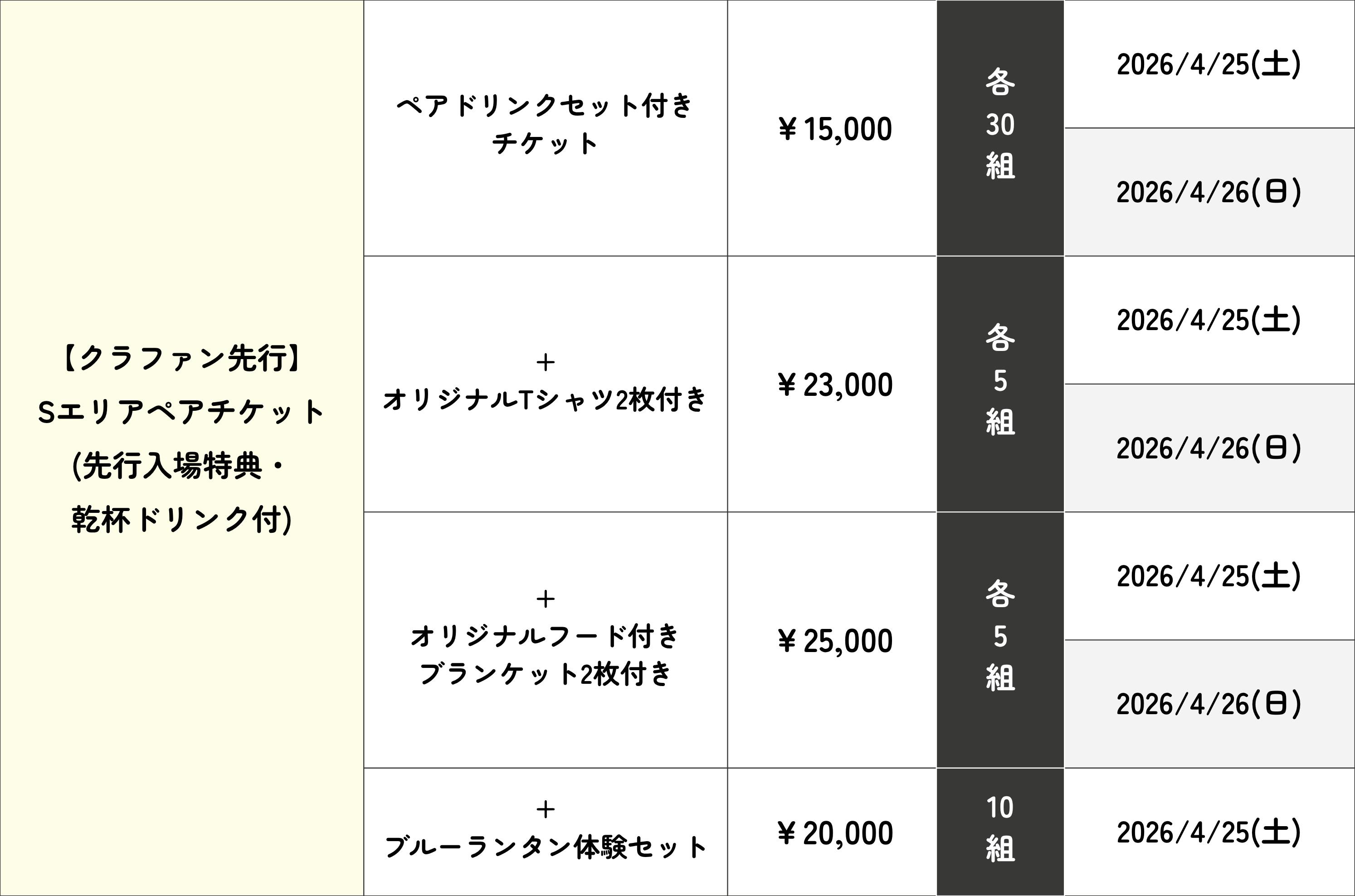 さらに、一般入場の列に並ばずスムーズに入れるクラウドファンディング限定の【先行入場特典】や【乾杯ドリンク】が付いた、お得で快適なセットプランです。
