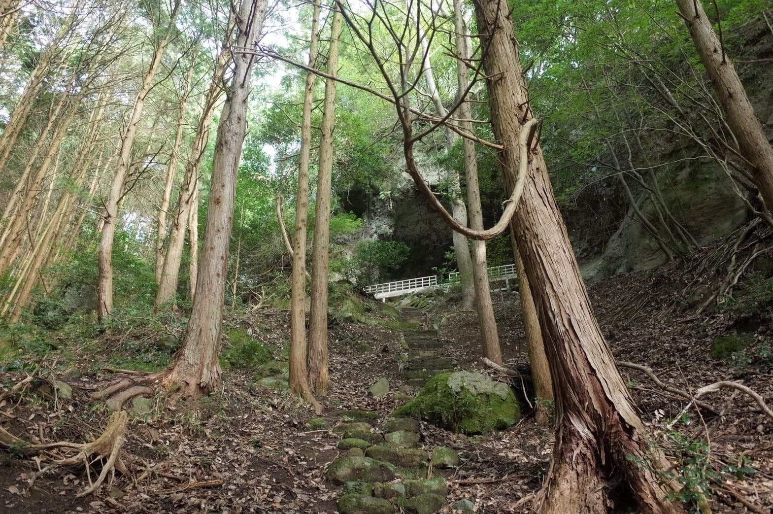急斜面を登った先に見えてきた岩窟