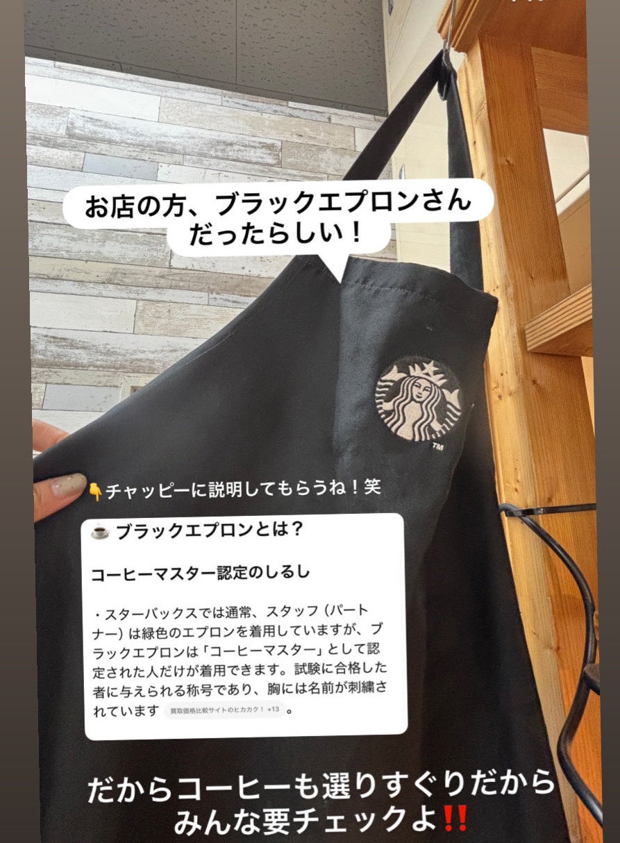 某コーヒーチェーン店で長期勤めブラックエプロンを取得しコーヒーの勉強をしていた経験があり