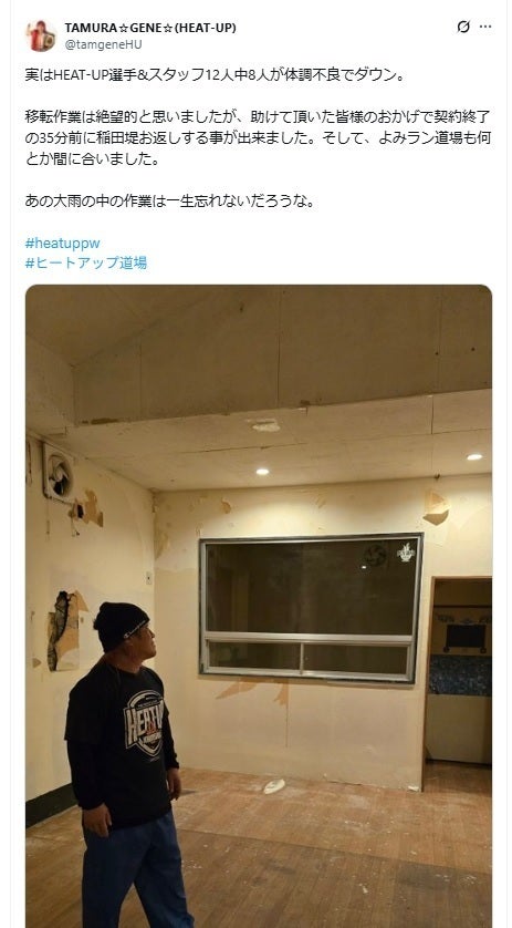 実はこの週、ヒートアップの選手・スタッフの多くが体調不良によりダウンしており、現道場の撤収および新道場の準備は、レスラー・ファン・スポンサーの皆さまの多大なるご協力のもとで進められました。この場をお借りして、心より感謝申し上げます。