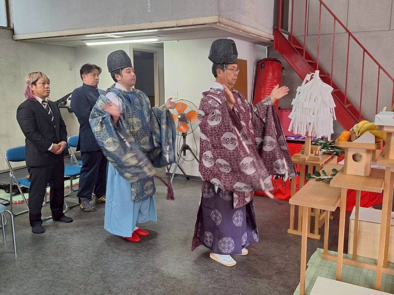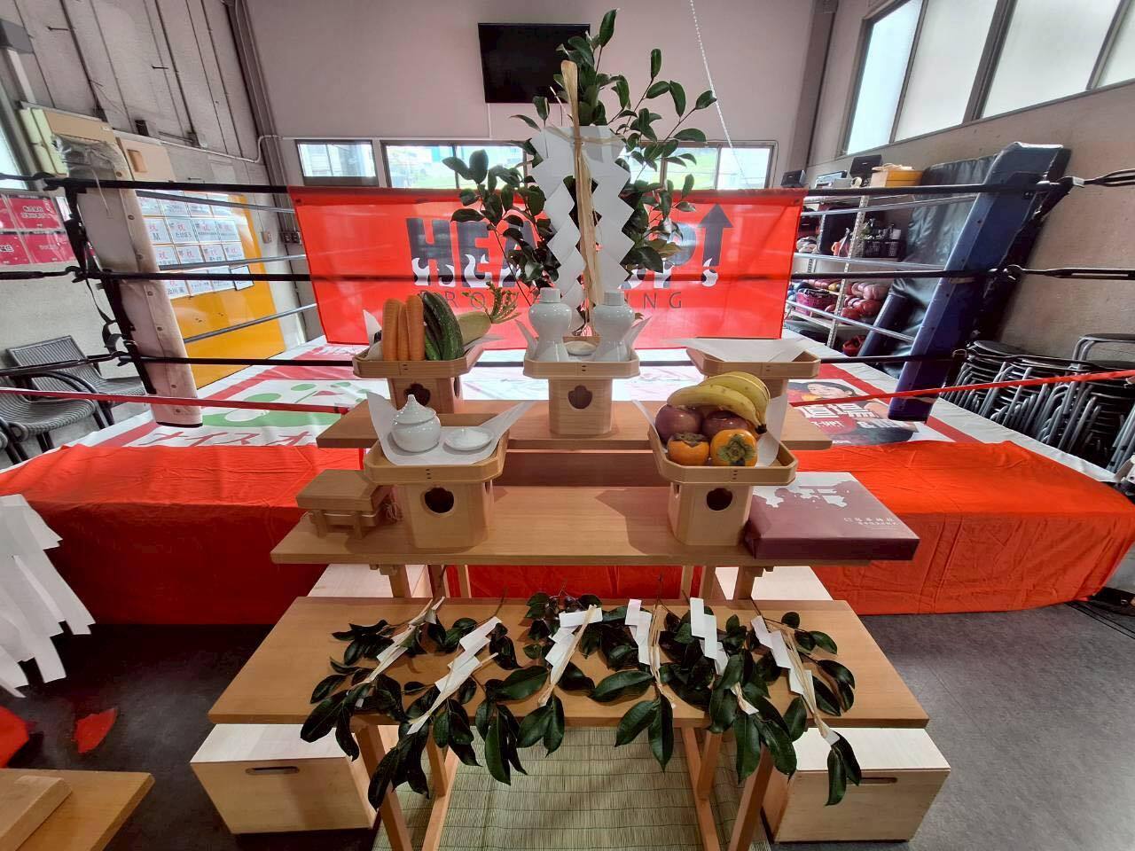 セレモニー当日は、まず麻生区の琴平神社より神主様をお招きし、安全祈願を実施。