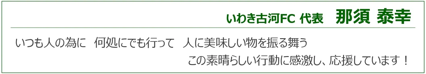 2026/01/31 08:58本日23:59をもって募集終了です。皆様の想いを受け止め、キッチンカー導入という形で地域に「美味しさ」と「元気」を届けます。本当にありがとうございました!2月8日、いわきFC開幕戦、ハワイアンズスタジアムグルメ出店いたします。これからもよろしくお願いします もっと見る【募集終了まであと1日】明日で最後です!