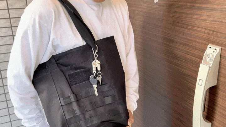 バッグの中で鍵を取り出せずにゴソゴソ...