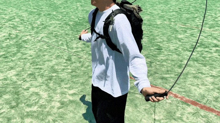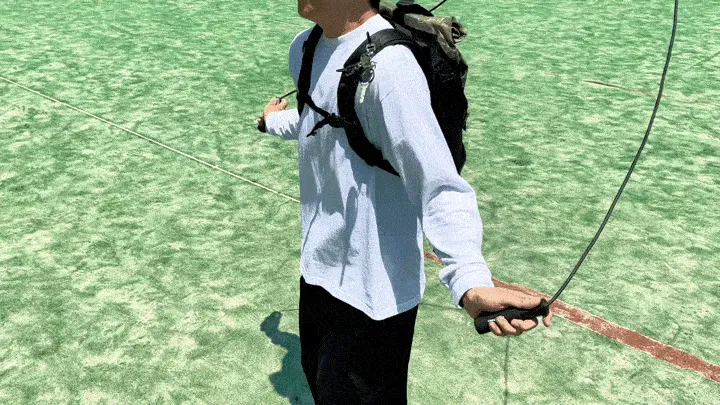 縄跳びを繰り返しあえて極端に揺らしても鍵をしっかりホールド!