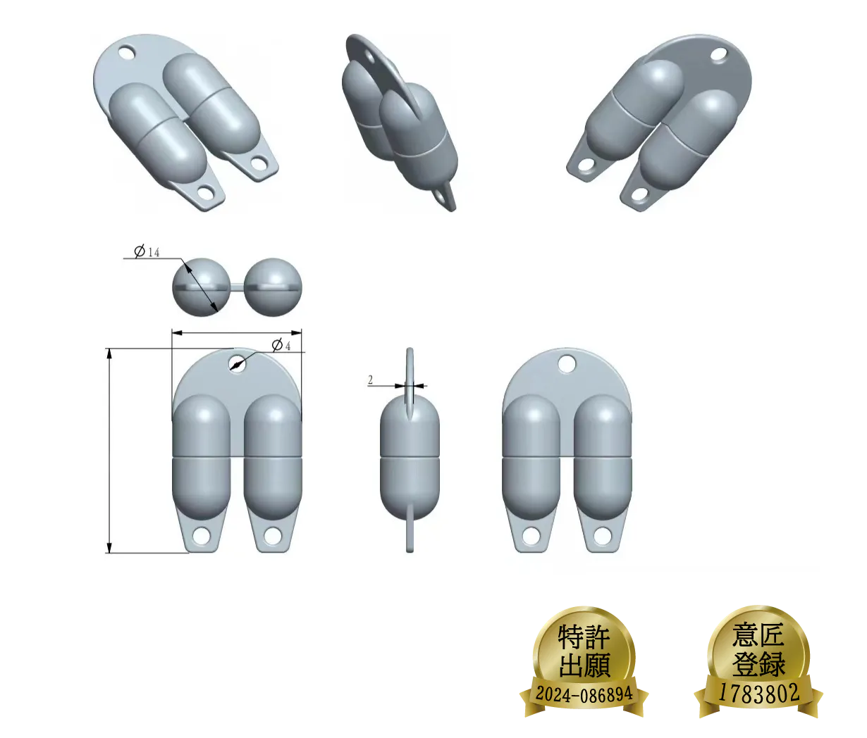 ダブルマグネットの特殊な形状は【特許出願】【意匠登録】を行っております。