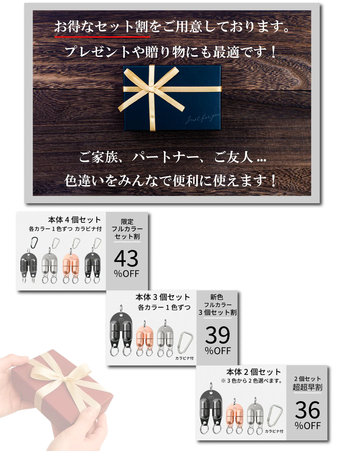 1つの本体で2つの鍵や小物を同時に持ち歩ける、