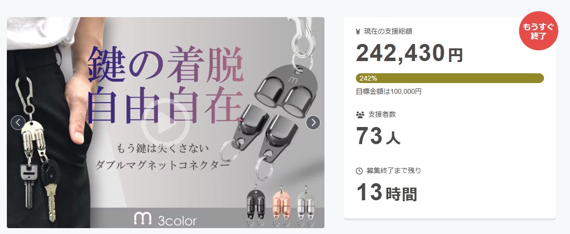 2025/11/17 10:08マグロックのプロジェクトは、いよいよ本日で終了となります。ここまで応援してくださった皆さま、本当にありがとうございます。現在までに 242,430円 / 73名の方にご支援いただいております。心より感謝申し上げます。また、製造はすでに完了しており、プロジェクト終了日の翌日よりすぐに発送準備へ入れる状態です。お届けをお待ちいただいている皆さまに、できる限り早く商品をお届けできるよう、スタッフ一同準備を整えております。ご検討中の方は、ぜひお早めにご参加くださいませ。本日で終了となりますので、この機会を逃さずぜひともお手に取っていただけたら嬉しいです。プロジェクト終了まで残りわずか。最後の瞬間まで、どうぞよろしくお願いいたします。 もっと見る