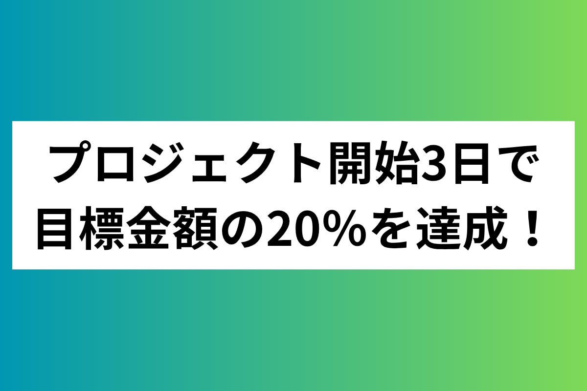 タイトルにもあるように、開始から3日で目標金額の20%を達成することができました!