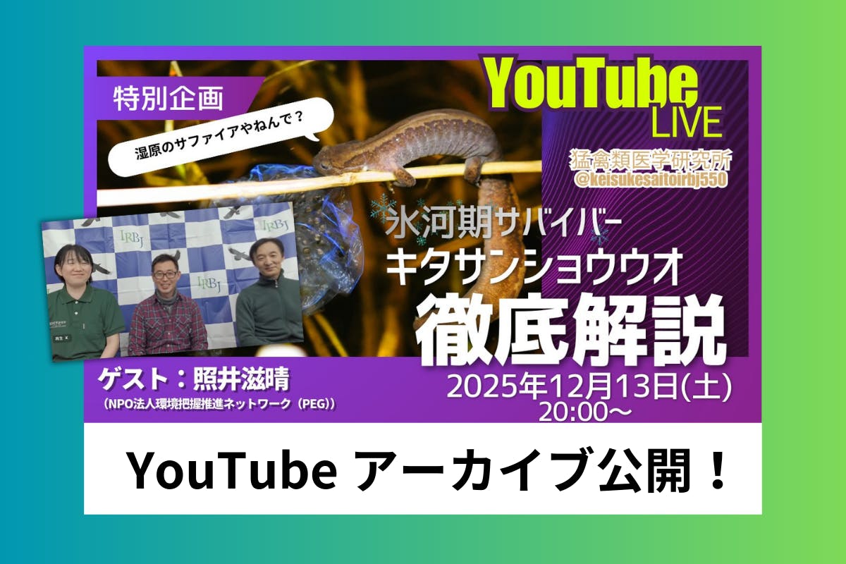 前回ご紹介しました猛禽類医学研究所さんのYouTubeライブの様子がアーカイブとしてご覧できるようになりました!