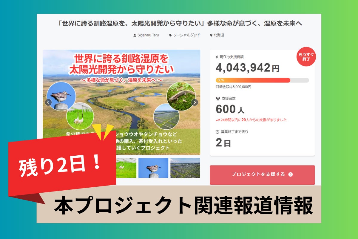 この教訓から方針を「見せる保全」へ転換したものの、現在、生息地では大阪の事業者によるメガソーラー建設が着工されています。