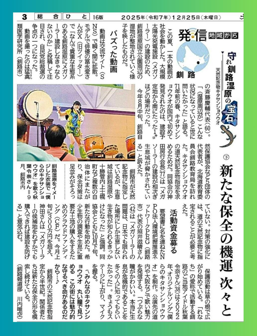太陽光発電事業者がオジロワシの止まり木やキタサンショウウオが生息している土地へ、駆け込みで工事を強行し、大変なことになっております。