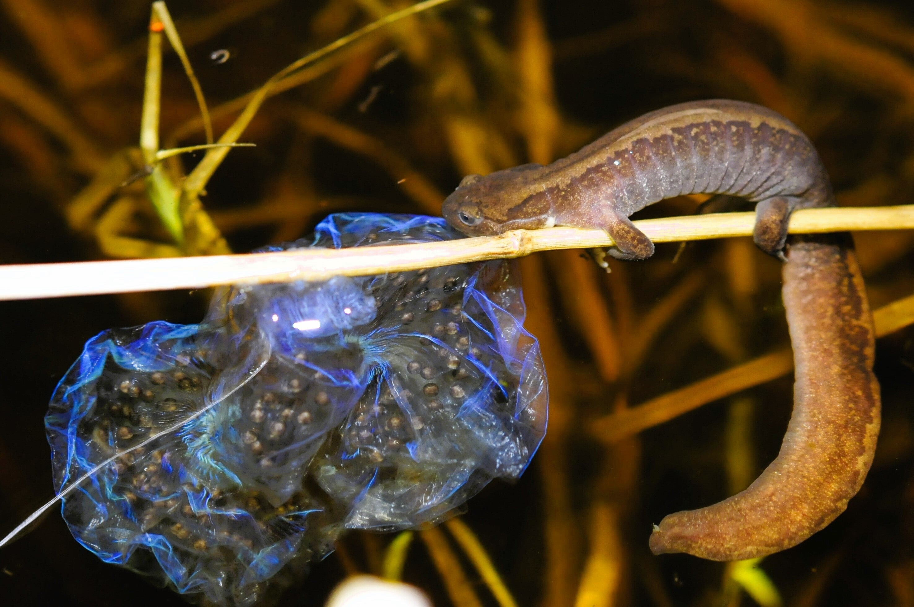 産卵直後の卵のうは「湿原のサファイア」と呼ばれる