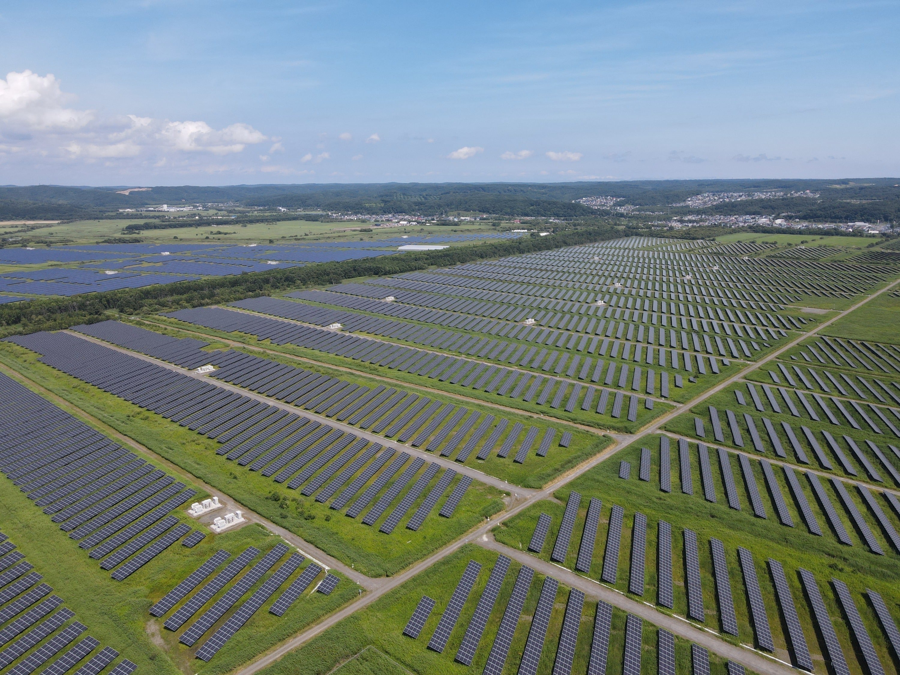 釧路湿原周辺に広がる太陽光発電施設